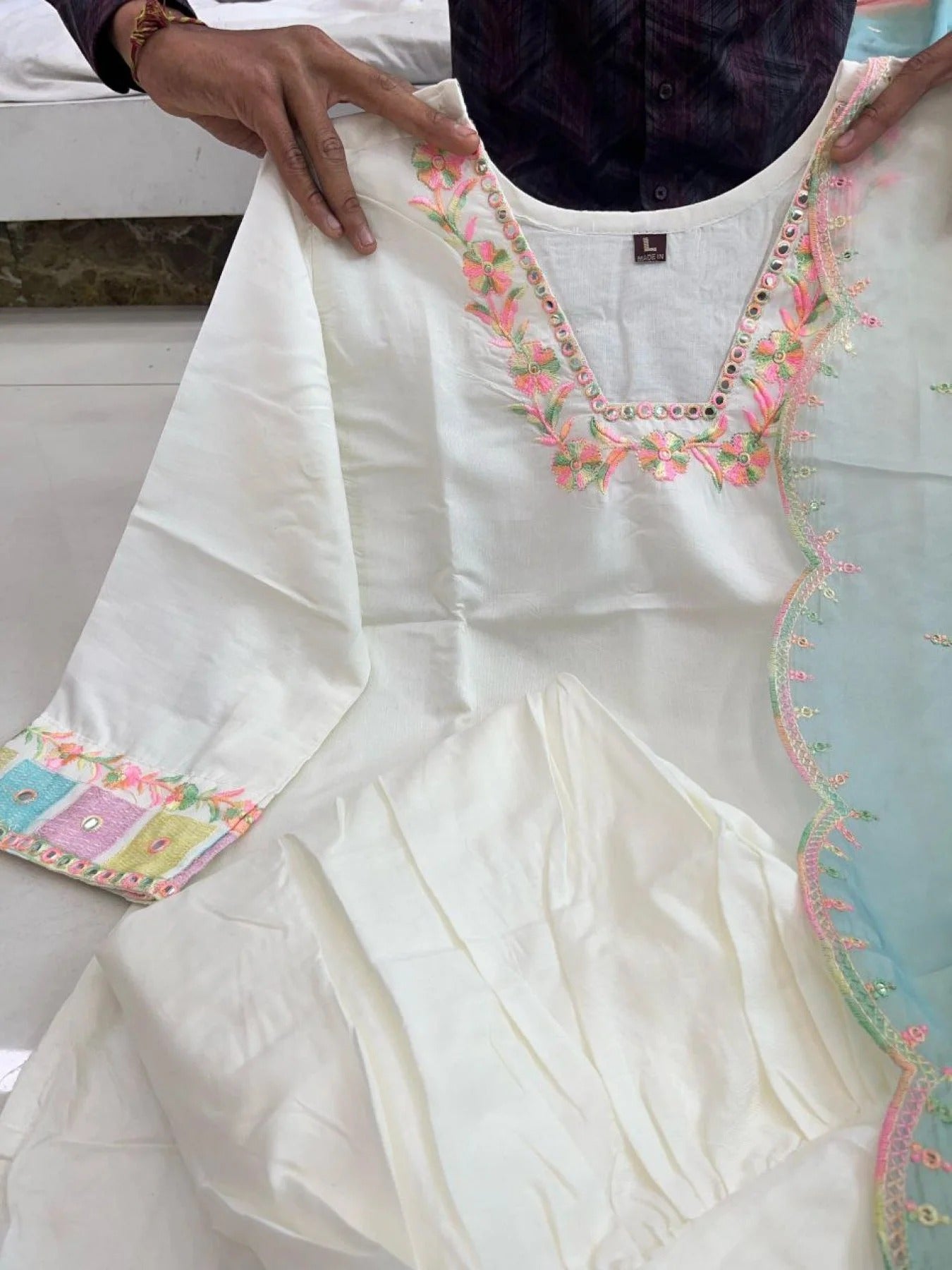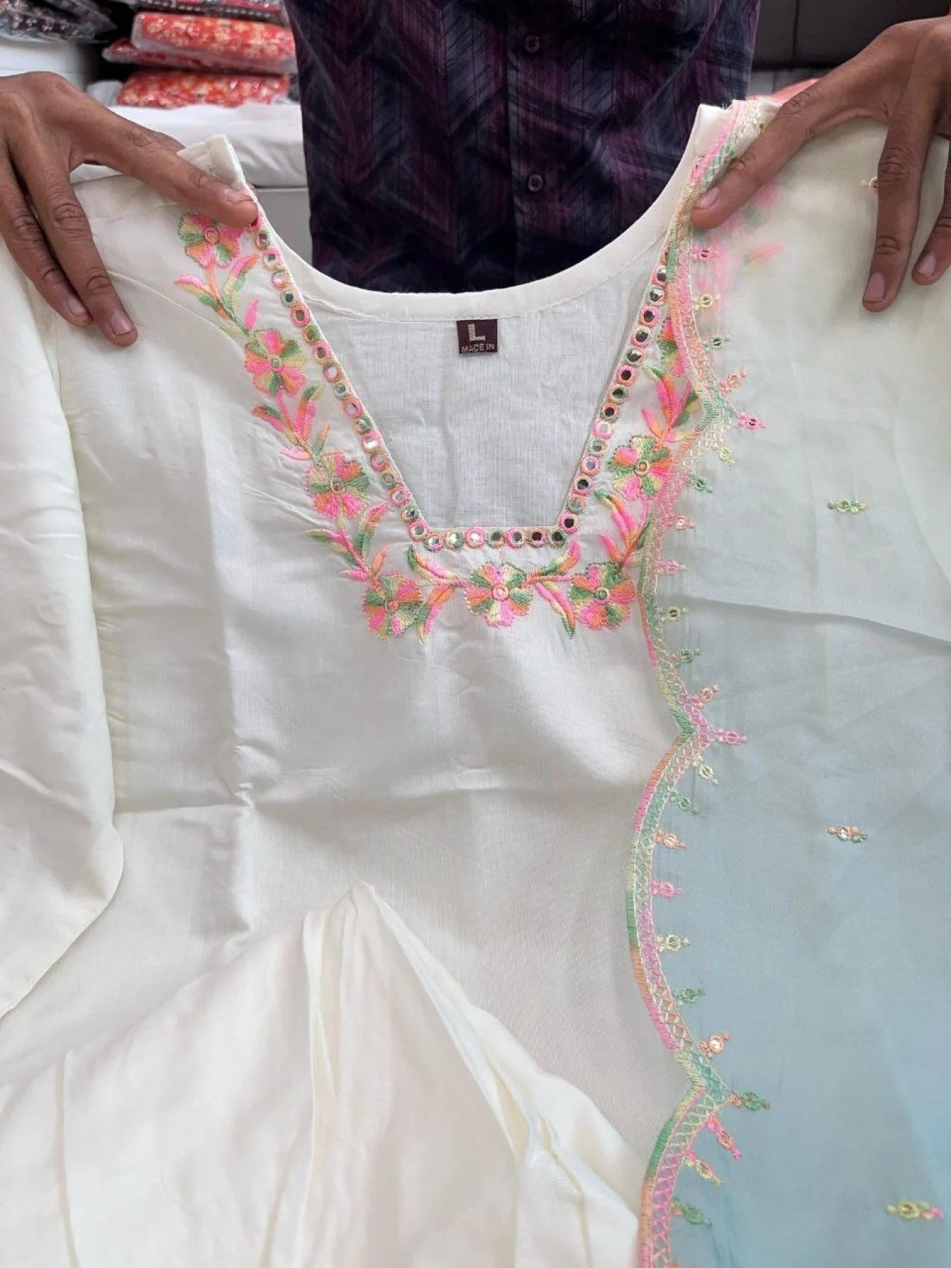 Fabric: Double-Shaded with Four-Side Multicolor Embroidery