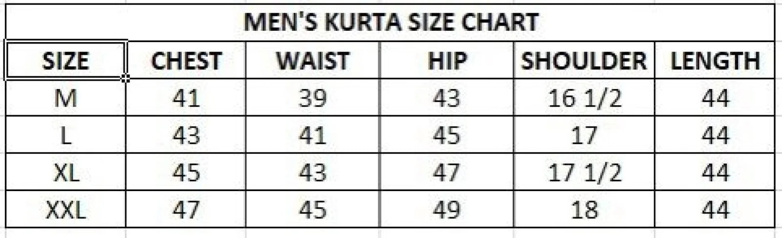 Note : For men kurta size chart attached.
