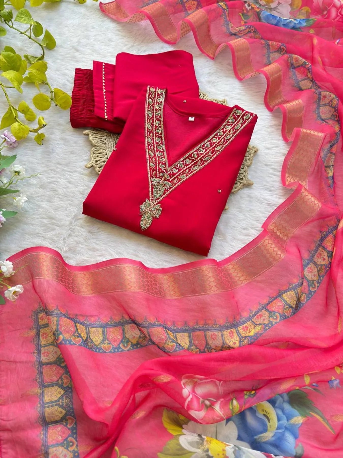 Ready-to-Wear Roman Silk Kurti Set with Zari Dupatta & Matching Pant 3PC Ethnic Womens Wear for Online Shopping
