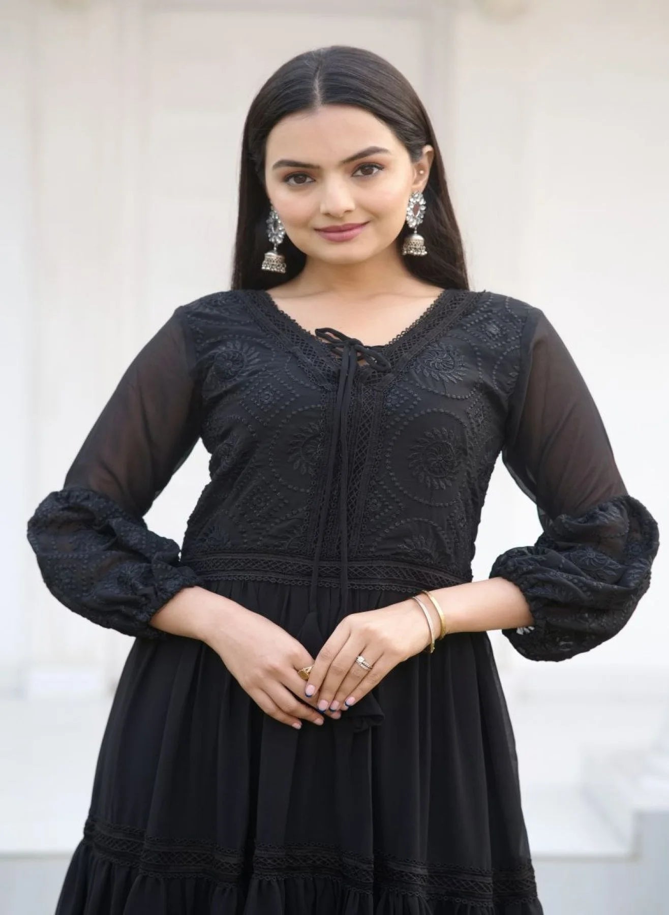 New Designer Embroidered Fox Georgette Gown Elevate your style with ourReal Modelling Product, featuring a stunning embroidered gown that’s perfect for festive occasions, parties, and celebrations.