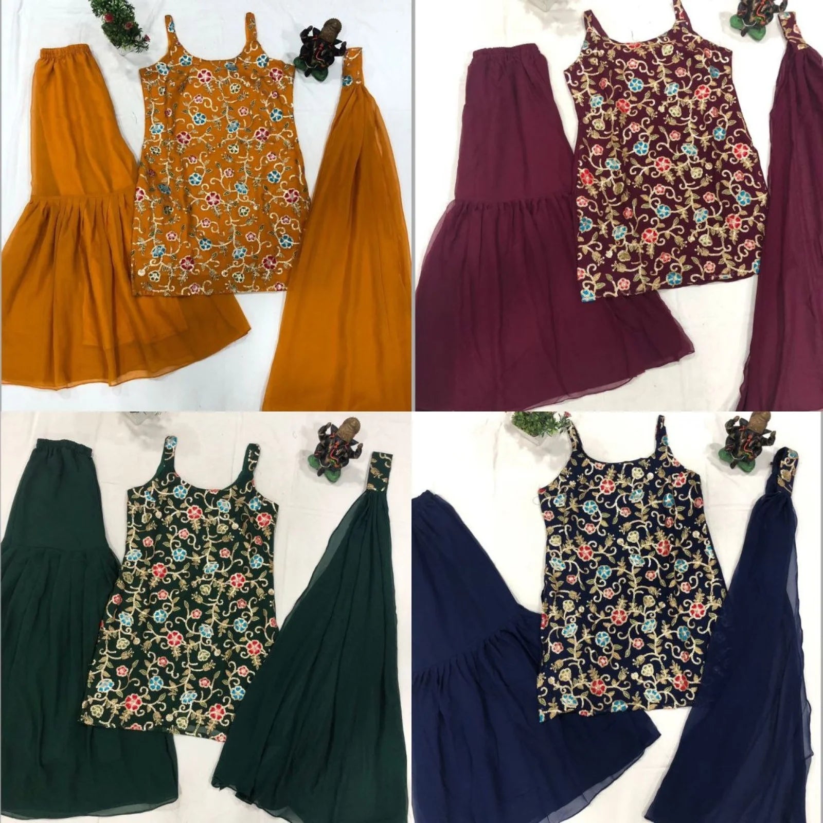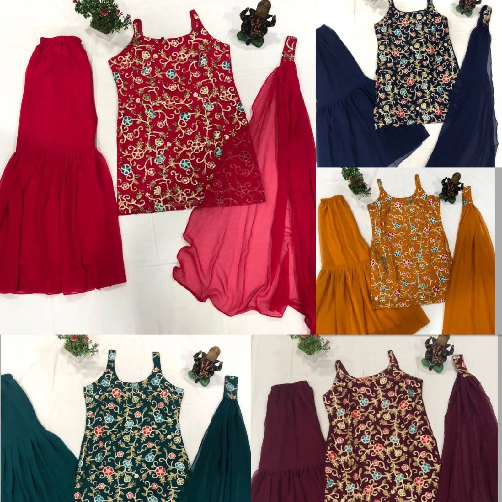 Wedding Wear Georgette Embroidery Work Sharara Suits Collection